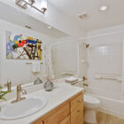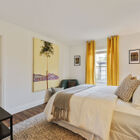 Further exploration of this level reveals three additional light-filled bedrooms, each one with a large closet, and a hallway bath with shower over tub. With a rare four bedrooms on one level, this floorplan is remarkably convenient and versatile.