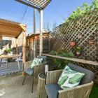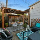 Resting on a private cul-de-sac in the East End neighborhood of Alameda, 1032 Doris Court is a delightful, 2BD/1BA Art Deco bungalow boasting charming period details including a traditional covered front porch, coved ceilings, burnished hardwood floors, and original built-ins. This light-filled home features oversized picture windows and has been remodeled with an eye to modern comfort and convenience with an updated cook’s kitchen and bath. The beautifully landscaped backyard is ideal for alfresco entertaining with pergola-covered patios and blooming flowers on the latticed fence. The detached garage has been finished and remodeled for use as an office or studio with a laundry area.