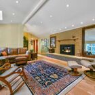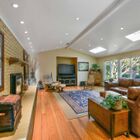 The dramatic yet discreet gate to 11373 Golf Links is framed by redwoods; as you make your way through it and up the home’s pristine drive, you are immediately impressed by the grace of the home’s gardens, each one lovingly conceived, planted, and maintained. Pass through the home’s inviting entryway and you will find a gracious floor plan that offers versatility and privacy; the home’s expansive living room opens to your right, and is distinguished by large picture windows overlooking the front garden, cathedral ceilings, a fireplace on a raised hearth, hardwood floors, and skylights. The home’s dining room hints at the alluring rear patio garden through sliding glass doors, while its stylish chef’s kitchen, with its massive bay window overlooking the garden, ample cabinetry and counterspace, and gleaming stainless steel appliances, beckons.