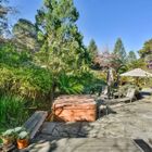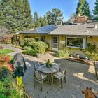 Accessible from the dining room, kitchen, and rear bedroom is this home’s remarkable rear garden and patio, which is beautifully tucked into a hillside framed by mature pines, redwoods, liquid ambers, and oak trees. A beautiful fountain graces the stone and brick patio, as does a hot tub and multiple seating areas. All of the gardens at 11373 Golf Links are professionally designed and landscaped, water-friendly, and drip-irrigated. The entire property is fully fenced and includes a dog run, and underground drainage surrounds it.