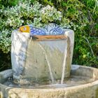 - Tranquil rear patio with multiple seating areas, fountain, and hot tub