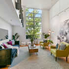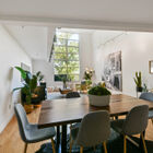 Blending beauty with history, the home is located in the converted section of the Oliver Lofts complex that was once the Oliver Rubber Company building. That section has been renovated to maintain the character of the original building - including the original freight elevator that takes you directly to your floor - while adding bold color, clean modern lines, a whimsical spiral staircase (for when you don’t want to take the elevator), and a lushly landscaped central courtyard and grounds.