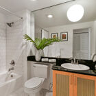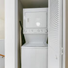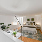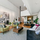 The mezzanine level is a marvel of design with not an inch of wasted space. The expansive loft bedroom overlooks the common area, while an urban-style catwalk offers space for shelves and a seating area. Also on this level are a very large walk-in closet, modern bath with shower over tub, and laundry area with stacking washer and dryer.