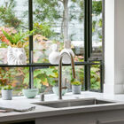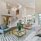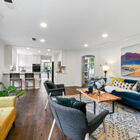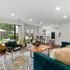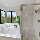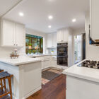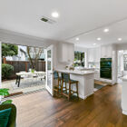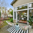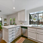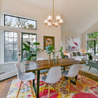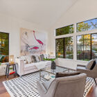 Sunny windows on all sides throw natural light into the living and dining rooms, and vaulted ceilings and clerestory windows create a sense of openness, while glass French doors off the dining room lead out to the lushly landscaped backyard. Adjacent to the dining room, the recently remodeled kitchen is perfectly configured for serious cooking. Expansive stone counters provide ample space for meal prep, abundant cabinets will store cookware, utensils and pantry items, and a greenhouse window over the farm sink offers space for an indoor organic herb garden. The gas cooktop and built-in dual oven make cooking a joy.