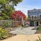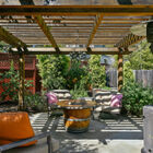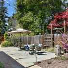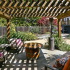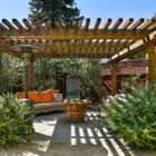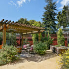 Professionally designed and landscaped, the magnificent enclosed backyard delights with its large bluestone paver patio for relaxing and entertaining (with several low-voltage electrical outlets at either end for a possible summer kitchen). The design of the yard itself is reminiscent of the Napa Valley, planted with drought-resistant native species including Western redbud tree, manzanita, wild daisies, hummingbird mint, and dwarf orange, lemon, and lime trees. The yard is fully-lit, creating a fantastic setting for a neighborhood party. Edible grapes climb a dramatic redwood pergola over the second patio, with hardscaped seating areas, LED party lights and a freestanding outdoor heater. Raised beds are planted with strawberries, and some are trellised for climbing berries as well.