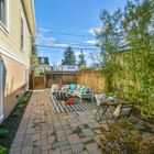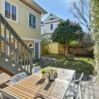 On the edge of Alameda’s coveted Gold Coast, 1423 Saint Charles is a bold and elegant 4BD/2BA Neoclassical Rowhouse where rich classic style blends with convenient modern upgrades. Exquisite period features include gleaming hardwood floors, soaring 10 foot ceilings, wide bay windows, antique pendant lights with elaborate ceiling medallions, brightly patterned Bradbury and Bradbury wallpaper, push-button light switches, and colorful stained glass. Lovingly refinished redwood doors, archways, and trim glow in the afternoon sunlight. Modern upgrades include an expansive eat-in kitchen, remodeled bath, and finished basement in-law quarters with separate entrance. An enclosed back garden is a tranquil retreat with mature landscaping and expansive pavered patios. Centrally located near Franklin Park and School, the home is moments from Park and Webster Street amenities, beaches, cafes, and the SF ferry. With a walkability score of 88 and a biking score of 77, this home offers the best of Alameda living.