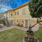 Shaded by a magnificent camellia tree, the enchanting back garden is a private grotto with a lush lawn, gently bubbling fountains, and mature hedges and trees. Two expansive pavered patios create a perfect space for afternoon barbecues or sophisticated evening entertaining under the stars.