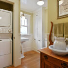 In addition to its countless aesthetic charms, this home offers a host of modern conveniences. Its spacious, well lit, and completely renovated kitchen overlooks the rear garden and features a wide chefs’ island with breakfast bar and under-counter storage, marble counters, six-burner Wolf gas range with griddle, concealed SubZero refrigerator and microwave cabinet, two dishwashers, and breakfast nook, and opens onto the tranquil private rear deck. The basement level boasts a small garden storage room and convenient craft room with sink. The hall bath has radiant floor heat. Ample closets, built-in shelving, and other thoughtful features abound. This is a home that anticipates your every need.