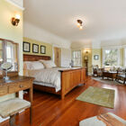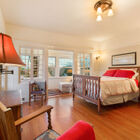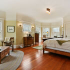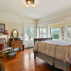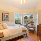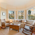 - Spacious owner’s suite has an enchanting light-filled sun porch and private balcony and features a wide multi-faceted corner bay window