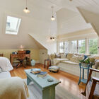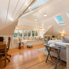 - Inviting finished attic lounge with five skylights and a built-in window seat