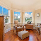 This home’s dynamic elegance is embodied by its playful circular floor plan, whose spaces flow seamlessly into each other. Several rooms feature bay windows, often placed in corners or whimsically shaped, injecting liveliness into the different spaces. The bedroom level is easily accessed from both the kitchen and entry. The spacious owner’s suite has an enchanting light-filled sun porch and private balcony and features a wide multi-faceted corner bay window. The attic has been ingeniously transformed into an inviting finished lounge with five skylights and a built-in window seat. This home’s light-hearted spirit can be felt in every one of its beautiful and lovingly preserved spaces.