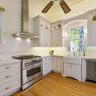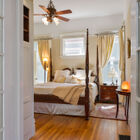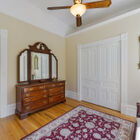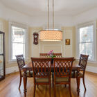 Every inch of this warm and welcoming home brims with charm, expertly marrying classic and contemporary. Turn-of-the-century design elements abound, including soaring high ceilings, oak floors, wainscoting, bay windows, stained glass, ornamental window frames, built-ins, wood-burning fireplace, and pocket and French doors. Updates include dual-pane windows, top-tier modern appliances and lighting, and recently refreshed baths. The main level includes the cheerful entry, owner’s suite with spacious closet and bath, additional full hall bath and adjacent bedroom, formal living and dining rooms, and the home’s star attraction: its expansive modern chef’s kitchen. Featuring ample storage and counterspace, built-in bench seating, breakfast bar, six-burner gas range, top-of-the-line JennAir and Samsung appliances, oak hardwood floors, and more, this stunning space also offers a comfortable breakfast nook and adjoining family room. Washer/dryer hook-ups in the kitchen allow for independent laundry on the main level.