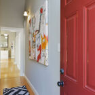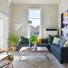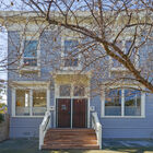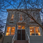 Upstairs, you enter your home through your own large private deck. Once inside, you will find a bright and airy space boasting high ceilings throughout, one large bedroom with vanity room and walk-in closet, and two smaller rooms. Beautifully updated, your upper-level home features new cherry-stained hardwood floors, stainless-steel gas stove and dishwasher, and washer/dryer, plus beautiful original architectural details and gorgeous antique matching chandelier sets, hanging light fixtures, and sconces. Your grand living room space boasts built-in bookshelves flanking either side of the period Victorian fireplace mantel that houses your new electric fireplace. Sunlight pours in through oversized windows. Built-in closets flank your living-room window seat, which offers under-seat storage and makes the perfect reading nook. Gazing out over your garden and neighborhood, your home feels at once tranquil and removed.