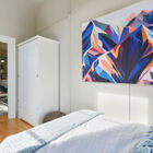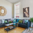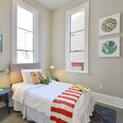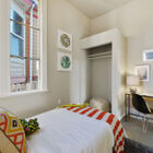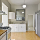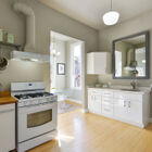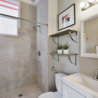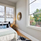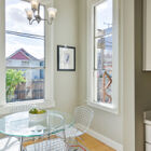 Your ground-floor unit is airy and modern, all pale grays, warm whites, and period trims. High ceilings, bamboo hardwood floors, and regal extra-tall windows bring space and sunlight to every room, and the home’s appealing floor plan plays with the light, allowing you to see different rooms from different angles in the home’s open common areas. Three beautiful bedrooms and a chic updated tiled bath give you a range of spaces to enjoy, while your open kitchen and and breakfast area imbue the space with the flavor of a loft. Modern appliances, including a gas range, and a conveniently located washer/dryer make your home both stylish and functional. Several of your windows gaze onto your peaceful garden.