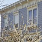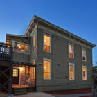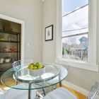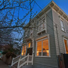 - Beautifully updated upper unit is bright and airy, with one large bedroom with vanity room and walk-in closet, two smaller rooms, new cherry-stained hardwood floors, stainless-steel gas stove and dishwasher, washer/dryer, beautiful original architectural details and antique matching light fixtures, built-in bookshelves, period Victorian fireplace mantel with new electric fireplace, and living-room window seat with under-seat storage