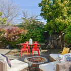 - Garden features a patio and fire pit area, vegetable beds, fruit trees (including Meyer lemon, orange, Kaffir lime, Granny Smith apple, plum, and Hass and Zutano avocado), and other greenery