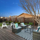 The enchanting back garden is an entertainer’s dream with a covered patio and large redwood deck with room for multiple seating areas - ideal for afternoon barbecues or evening drinks and hors d'oeuvres. The lush lawn is framed by raised beds of shrubs, and a trellised fence supports fragrant wisteria bushes.