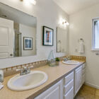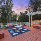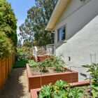As soon as you enter 175 Crestmont, you are drawn to its bright beautiful common area, which features hardwood floors, a wood burning brick fireplace with raised hearth, and huge windows overlooking the deck, the bay and surrounding trees. Continue your exploration of this 1,398 square foot home home and you will find its dining area, which is an open concept configuration with the home’s chef’s kitchen and features a sliding glass door to the home’s deck, which is the home’s showpiece: expansive and beautifully maintained, it features multiple seating areas and bay views as well as a large hot tub. The enclosed rear garden includes two raised vegetable beds as well as a flower bed.