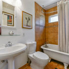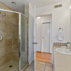 Further exploration of 175 Crestmont reveals two bright bedrooms that share a hallway bath with a shower over a beautiful clawfoot tub as well as terracotta tile. A few steps farther is the home’s spacious and delightful owner’s suite, with two large closets with custom shelving, and a bath with shower and a dual-sink vanity. In the owner’s suite, light pours through large windows that overlook the home’s deck as well as the bay.