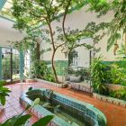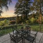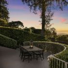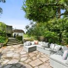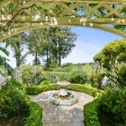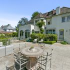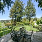 Shaded by majestic redwoods, the grounds surrounding the estate are truly magical with stepping stones leading to multi-level patios, multiple seating areas, a bowling green, and a detached structure that was once a children’s playhouse. A kitchen garden of raised beds are planted with lavender, herbs, and vegetables.