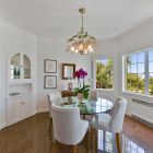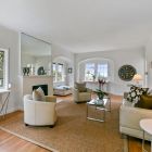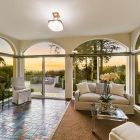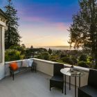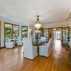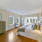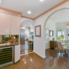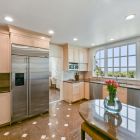 Among the updates to the original home is the modern chef’s kitchen with a Wolf cooktop, new dual built-in ovens, Bosch dishwasher, and trash compactor, and a large window over the sink offers peaceful bay views. For the chef who loves to entertain, a butler’s pantry offers a second Miele dishwasher, two-burner Gaggenau cooktop, and second sink and refrigerator.