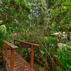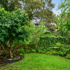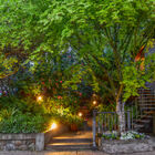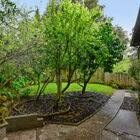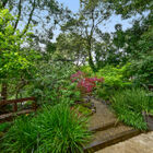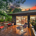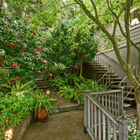 There is seldom a time of year when something isn’t blooming, whether it be camelias, azaleas, rhododendrons, the spectacular orchid tree, vanilla vine, lilac, or star jasmine. Fern-filled pathways lead through the garden to an understated Asian-inspired footbridge.The side yard has a very large patio area featuring a wooden deck, which leads from the dining room to the garden outside. Brick steps lead down to a private backyard full of fruit trees including pears, meyer lemons, oranges, grapefruit, and plums. The walkway opens to a lawn surrounded by hydrangeas and tree ferns - ideal for entertaining or a children’s play area or both.