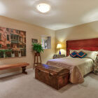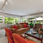The living room opens onto a spacious dining room with floor to ceiling cupboards for exceptional storage. The window’s bay creates a side table for the dining room from which to serve. Sliding glass doors open from the living room onto the deck and down to the patio.