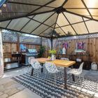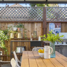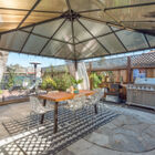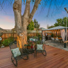 The showpiece of the home is the enchanting rear yard, screened by evergreen pittosporum trees for privacy, that includes a bubbling spa perfect for relaxing under the stars or taking morning coffee out to watch the sunrise. Shaded by a leafy box elder tree at the center of the expansive Trex deck, the yard is also an entertainer’s dream with space for multiple seating areas for relaxing or for a wedding venue complete with a dance floor - or turn on the bistro lights and host the best party your friends have ever seen. The gazebo tent tucked in at the back of the yard might serve as the perfect spot for a buffet lunch, alfresco holiday dinner, or simply lounging with the Sunday paper.