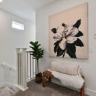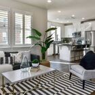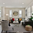 Back at home, the open floor plan creates a light-filled living space reminiscent of the great room concept. The welcoming living room features gleaming hardwood floors, sunny windows, and recessed lighting.