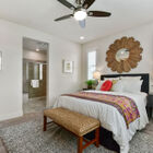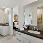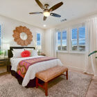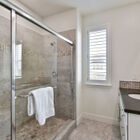 Two additional bedrooms are nicely lit by large windows with plantation shutters and large closets. The shared full bath has tile floor, stone vanity with dual sink, and shower over tub. Also on this floor are the conveniently located washer and dryer.