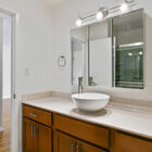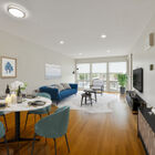 Located in the stylish Capri, Alameda’s noteworthy mid-century waterfront property across from the beach, 1825 Shoreline, Suite 211 is a sun-washed 1BD/1BA home with an open floorplan, hardwood floors, recessed lighting, floor-to-ceiling windows, and private balcony with partial bay views. The updated kitchen features stone countertops and stacked stone backsplash, electric range with double oven, and ample wood cabinets. The stylishly updated bath includes a large walk-in shower and wide vanity with vessel sink.