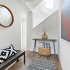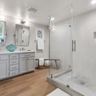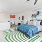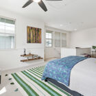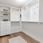 The home’s lowest level includes a guest/au pair suite. The generous bedroom boasts an expansive closet ideal for storing larger items, a bath with a shower over tub, and internal access to a two-car garage.