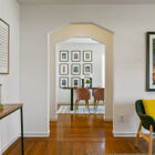Situated on a wide and quiet street in the Farrelly Pond neighborhood of San Leandro, 207 Bowling Green is a charming 3BD/1BA, 1296 sq ft Mid-Century Modern with high ceilings, gleaming hardwood floors, and light-filled rooms. The home includes a sun-washed living room with corner windows flanking a wood-burning fireplace, a formal dining room, and an expansive eat-in kitchen with colorful vintage tile countertops and backsplash. Three bedrooms - each with corner windows and large closets - share an updated bath with shower over tub and convenient linen closet, and a separate laundry room includes a stacking washer and dryer. Shaded by a towering and prolific avocado tree, the enclosed backyard offers space for a children’s play area, organic garden, or barbecue grill. A detached garage and long driveway provide ample off-street parking.