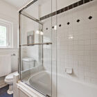 On the other side of the home are 2 bedrooms, each with sunny windows and large closets. The bedrooms share a full bath with a decorative tile shower over extra-large tub, custom vanity, and a window of glass brick that provides light without sacrificing privacy. A conveniently placed linen closet in the hall offers ample storage space.