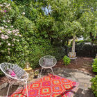 The beautifully landscaped back garden is a peaceful space to relax at the end of a busy day surrounded by tall bushes, mature trees, flowering plants, and a profusion of fragrant roses and bright hydrangeas. The spacious deck and patio are ideal for an alfresco meal or outdoor entertaining for family and friends.