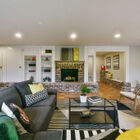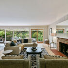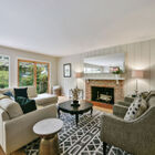 - Open common areas flooded with natural light and featuring beautifully preserved random-plank hardwood floors, an elegant wood-burning fireplace, and sliding glass doors to the rear patio and garden