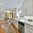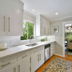 - Kitchen offers adjacent reach-in pantry storage, quartz counters and subway-tiled backsplashes, and stylish modern hardware and appliances