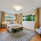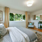 - Three main-floor bedrooms and two full baths: two bedrooms with bay views and shared hall bath, plus the beautiful owner’s suite, whose windows gaze over the rear garden