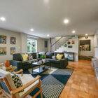 - Bonus space features a stately wood-burning fireplace, eye-catching parquet hardwood floors, and direct access to the lower rear garden