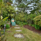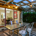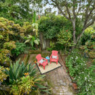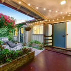 - Rear and front gardens brim with greenery and flowers, including a Meyer lemon tree, wisteria vines, palms, and other plants