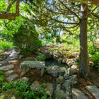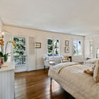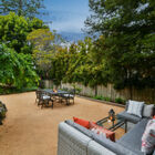 Surrounded by magical gardens of crimson bougainvillea, blooming camellia trees, splendid beds of roses, and privacy hedges of fragrant jasmine, the home has the feel of a private manse - a true escape from the rest of the world. Beneath a towering redwood, the enormous back garden is an enchanting private park where flagstone paths meander through an abundance of flowers, shrubs, and trees, with multiple seating areas for elegant garden parties or sophisticated evening entertaining.
