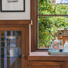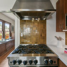 Recently updated, the sleek modern kitchen features stone countertops, Heath tile backsplash, and abundant cabinets and drawers. Open corner shelves - perfect for growing herbs or displaying collectibles - flank a wide window overlooking the rear garden. The discerning home chef will appreciate the Bluestone 6-burner gas range with oversized hood.