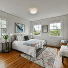 Situated on a large corner lot in the beautiful Mills Gardens neighborhood, 2900 57th Avenue is a charming, historic 3BD/1.5BA 1825 sq ft split-level Storybook home with cross-gable roof and front porch featuring period arch and cutouts. Beautifully landscaped, this light-filled home boasts vintage architectural details including gleaming hardwood floors with decorative mahogany inlays, high ceilings and crown molding, wood-trimmed windows, bay and double-hung windows, and even a vintage milk door in the kitchen--a reminder of a bygone era. The recently remodeled baths and updated eat-in kitchen with breakfast nook provide modern comfort and convenience. Additional features include a finished basement, detached garage, and an inviting enclosed backyard. Near Mills College, Concordia Park, restaurants, shops, and convenient commuter options.