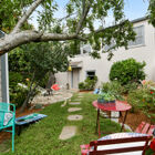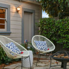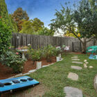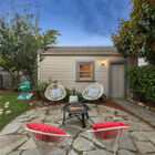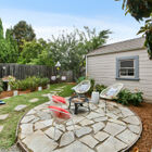 The enclosed backyard is a private retreat with its flagstone patio surrounded by roses, gardenias, plum and Meyer lemon trees, and a variety of flowering shrubs--an ideal spot for morning coffee, quiet contemplation, or al fresco dining.