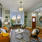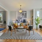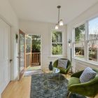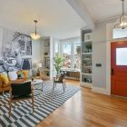 From the traditional front porch with decorative front gable and millwork spindles, a focal point of the charming entryway is the original newel post and elegant stairway lit by a vintage-style pendant light and is open to the gracious living room with gleaming hardwood floors and high ceilings. Built-in shelves flank a rectangular bay window - a perfect spot for a sunny window seat overlooking the neighborhood.
