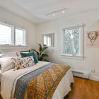 Upstairs, running the full width of the home, the primary bedroom is a beautiful, light-filled retreat with engineered hardwood floors and a rectangular bay window overlooking the neighborhood. Two additional bedrooms enjoy large windows and closets; one leads to an enclosed sun porch surrounded by walls of windows overlooking the lush yard below.