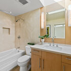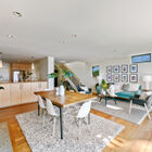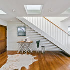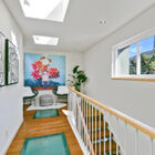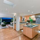 Under the guidance of award-winning architect Dan Phipps, the home has been extensively remodeled, reconfiguring rooms to open up the original space, while a custom lighting system magically creates intimate spaces within the open rooms. With its calming color palette, the great room glows in the abundant natural light pouring in through multiple skylights, accompanying custom floor skylight inserts, and oversized picture windows that highlight dramatic views of the multihued Alameda sunsets.