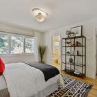 Further exploration of 2992 Hedge reveals the home’s spacious owner’s suite, with a large picture window overlooking the rear garden and a bath with step-in shower. Continue down the hallway and you will find a laundry area tucked behind folding closet doors, two additional bedrooms, and a shared hallway bath with shower-over-tub.
