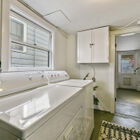 As you make your way downstairs to the basement level, you will find a dedicated laundry area with washer and dryer. Exploring further, you enter the 1-car garage that has built-in cabinets and a work table as well as a half bathroom.
