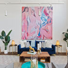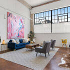 A magical, modern industrial loft in the heart of Oakland’s historic warehouse district, 309 4th Street, Suite114 in Portico Lofts is a live/work space with a marvelous blend of creativity featuring soaring open spaces and thoughtful built-in storage opportunities. Polished concrete floors, tall ceilings, high windows, large skylight, and abundant natural light enhance the living/kitchen area, while the spacious mezzanine level is lit by multiple skylights with custom shades. Unique to this unit (and the reason for the skylights) is its history as the warehouse loading dock with direct access from the old 3rd Street rail line. The original pallet markings are still visible on the polished concrete floor, as well as remnants of an overhead hoist. With a walk score of 97, this beautiful home is ideally situated near the heart of Jack London Square, BART, Amtrak, and the Oakland/SF ferry.